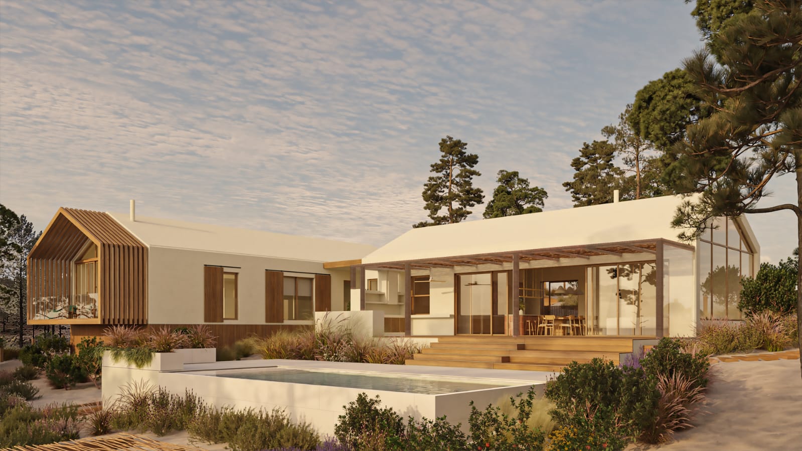 O piso térreo dará acesso ao exterior, ao espaço de terraço e piscina. O piso de cave é destinado à zona de áreas técnicas, arrumação e à garagem.